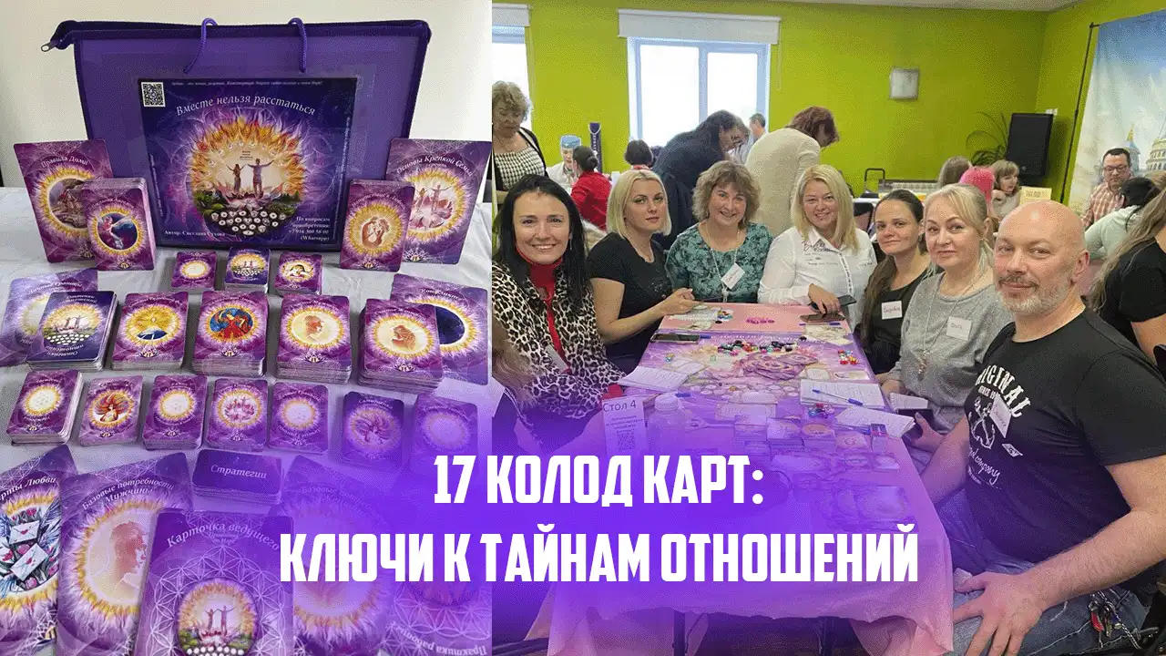 - Полный набор из 17 (!) колод метафорических карт: Уникальные авторские колоды для работы с любым запросом: от проработки эмоций («Калейдоскоп эмоций») и родовых сценариев («Оттенки отношений») до поиска ресурса («Советы семейной феи») и работы с денежными установками.